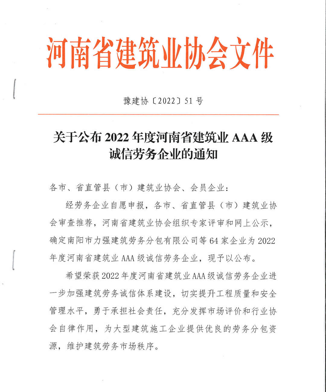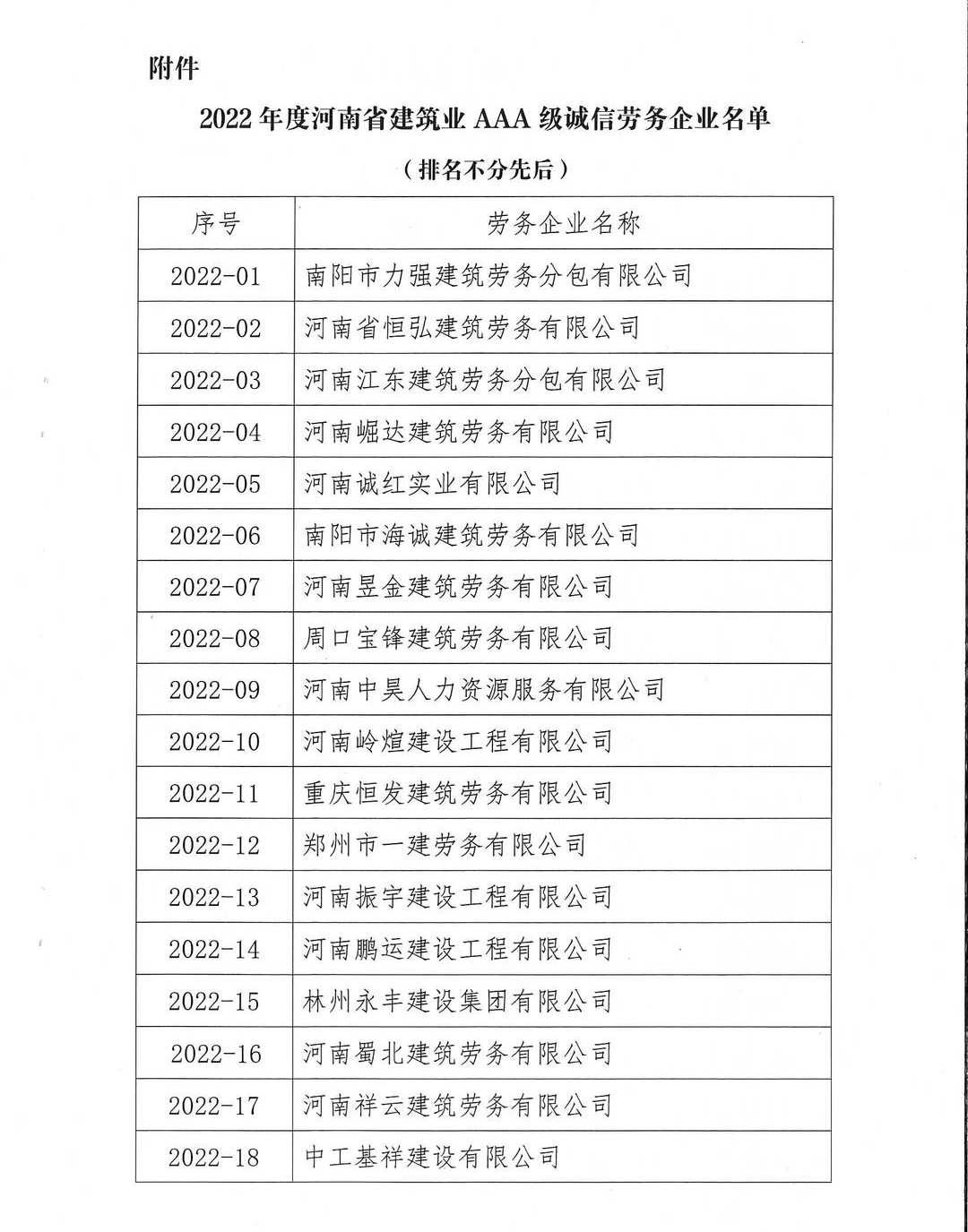 喜訊|公司榮獲2022年度省AA***誠信勞務榮譽